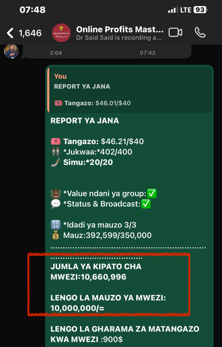 “Hebu Songea Karibu Hapa Kisha SIKILIZA Hii Video Hapa Chini Nilifanya live Nikiwa Na Mentor Wangu Nimetoboa SIRI Kibao Zilizonifanya Nikatengeneza Millioni 24,242,758 Ndani Ya Miezi mitatu”