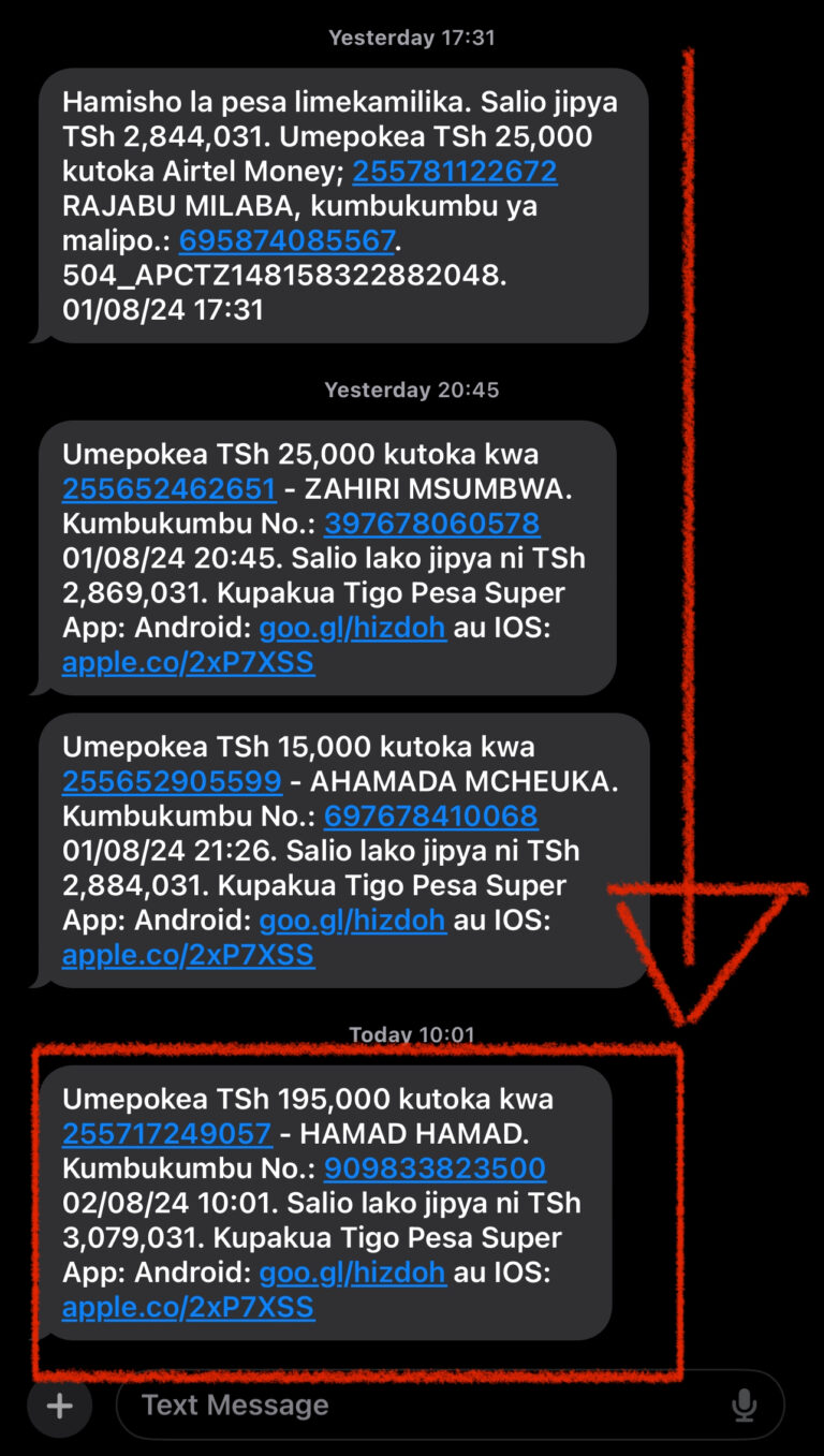 Usijali Baada ya Malipo nitumie sms ya mwamala whatsap
